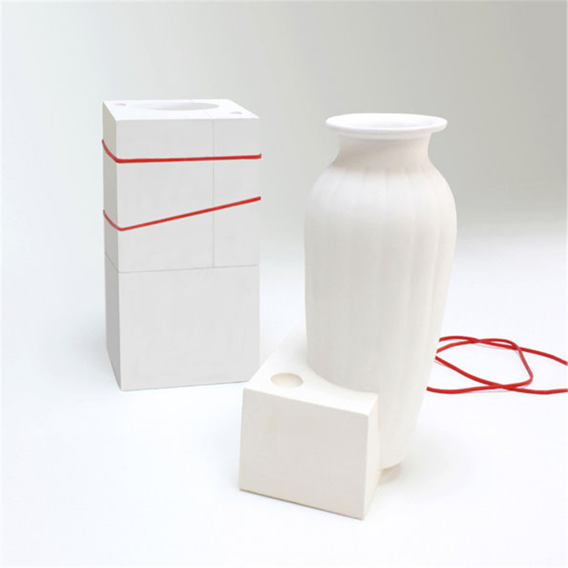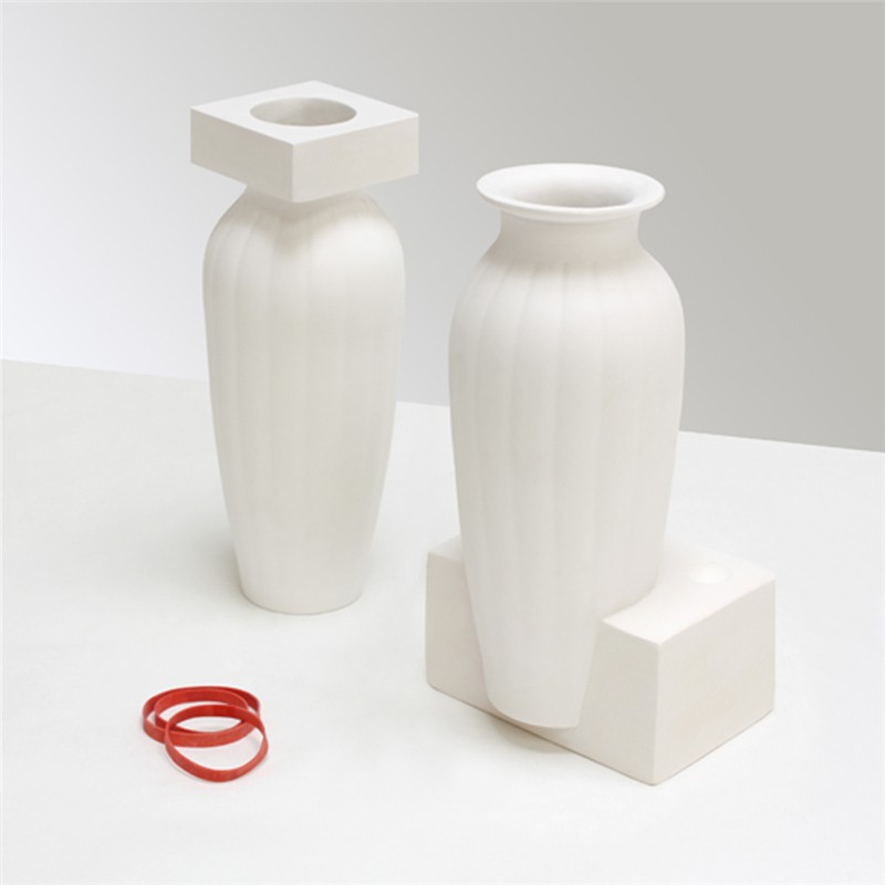 石膏注漿成型的模具通常在使用后就被丟棄。這些白色優(yōu)美剛?cè)岵?jì)的花瓶從模具中來(lái)并表達(dá)出通常不為人們所見的模具之美。